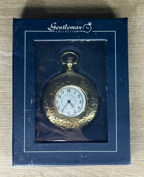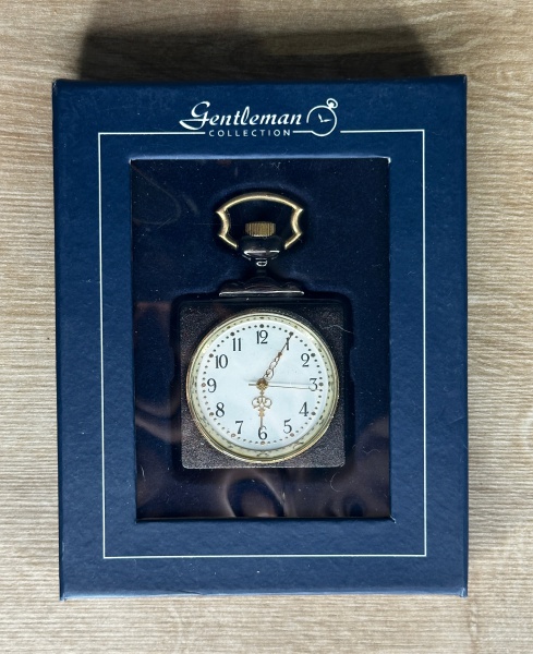 • Gentleman Collection - Relógio de bolso, acondicionado na embalagem original - med. aproximadamente 4,3 cm - Peça em bom estado de conservação (Maquinário não testado, sem garantia de funcionamento). Faltando o pino.