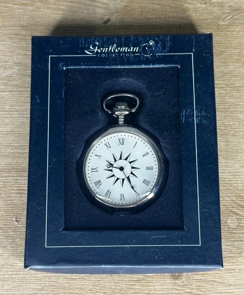 • Gentleman Collection - Relógio de bolso, acondicionado na embalagem original - med. aproximadamente 4,5 cm de diâmetro - Peça em bom estado de conservação (Maquinário não testado, sem garantia de funcionamento).