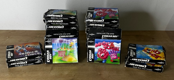 • COUGARBOY - Lote constando de aproximadamente 22 cartuchos, com os seguintes jogos: ARMOUR FORCE / BOMB DISPOSER / MAGIC MAZE / MAGIC TOWER - Para solicitação de mídias adicionais e esclarecimento de dúvidas, entrar em contato através do telefone (21) 99377-0652.