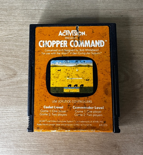 • ATARI 2600 - CHOPPER COMMAND - Cartucho de jogo. FUNCIONANDO no momento, sem garantia futura - Para solicitação de mídias adicionais e esclarecimento de dúvidas, entrar em contato através do telefone (21) 99377-0652.